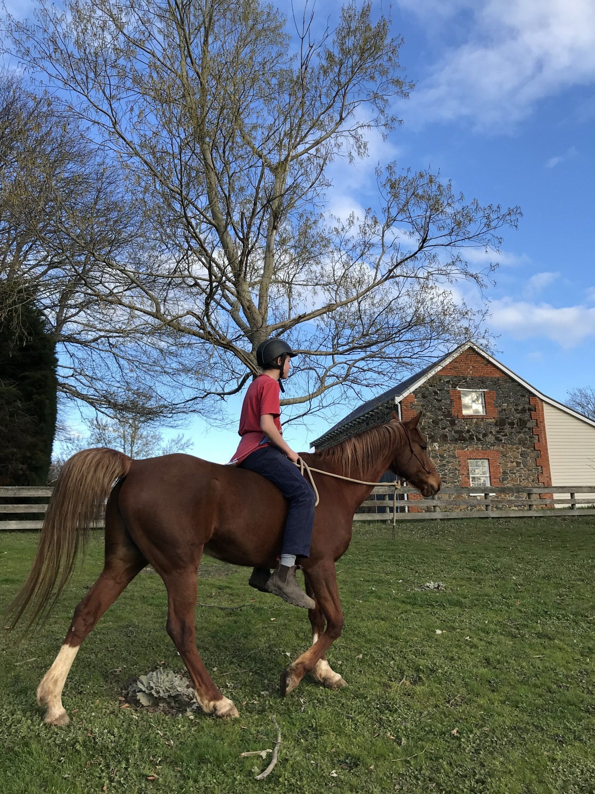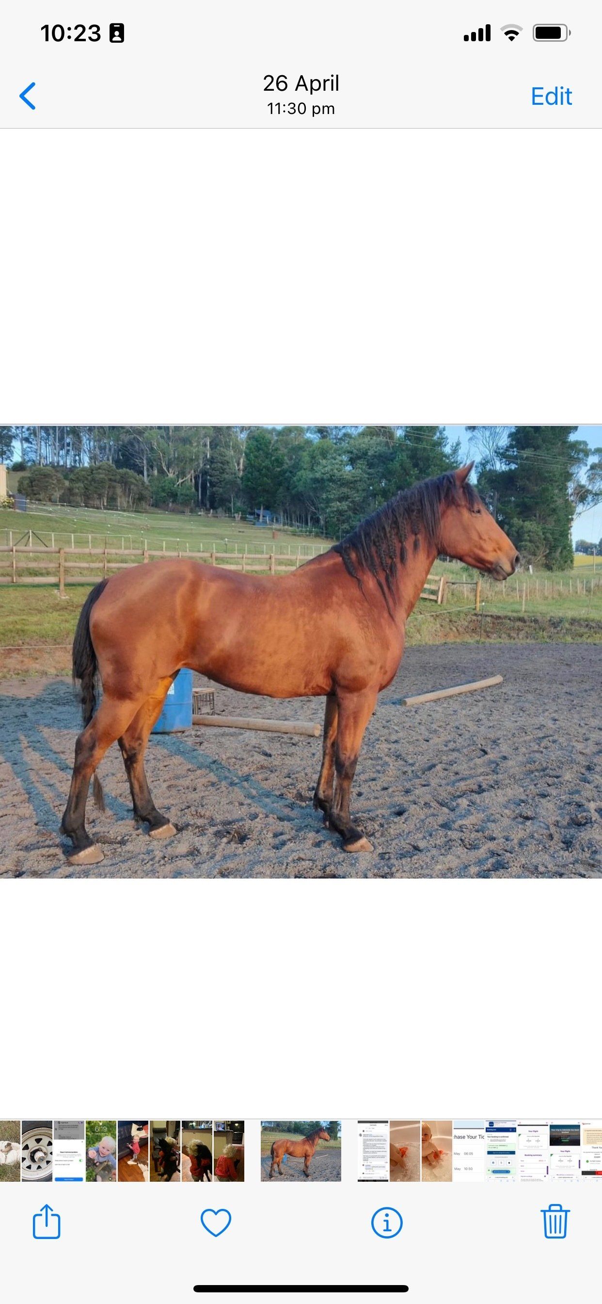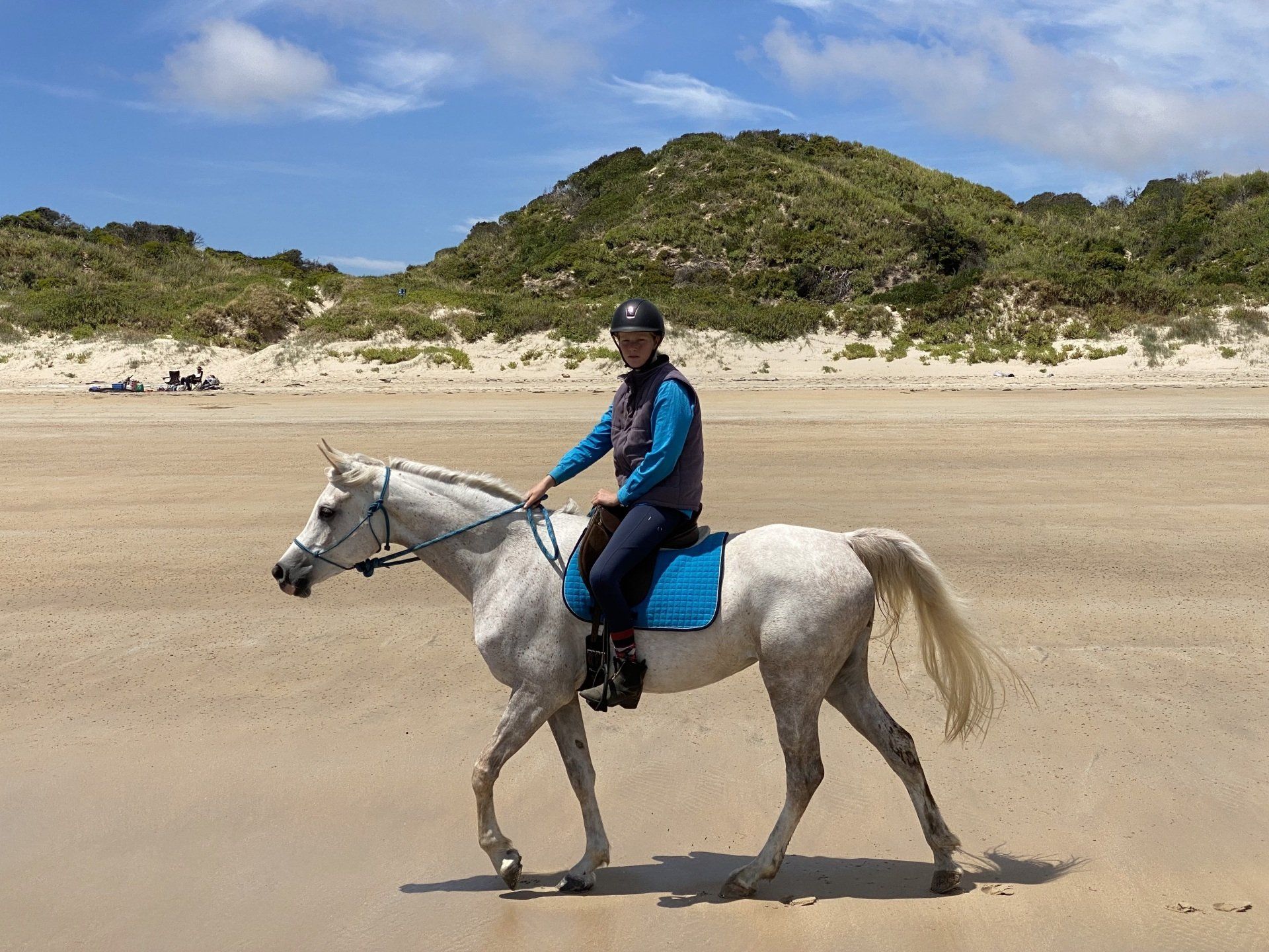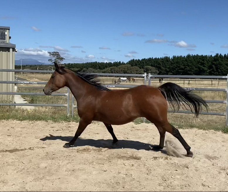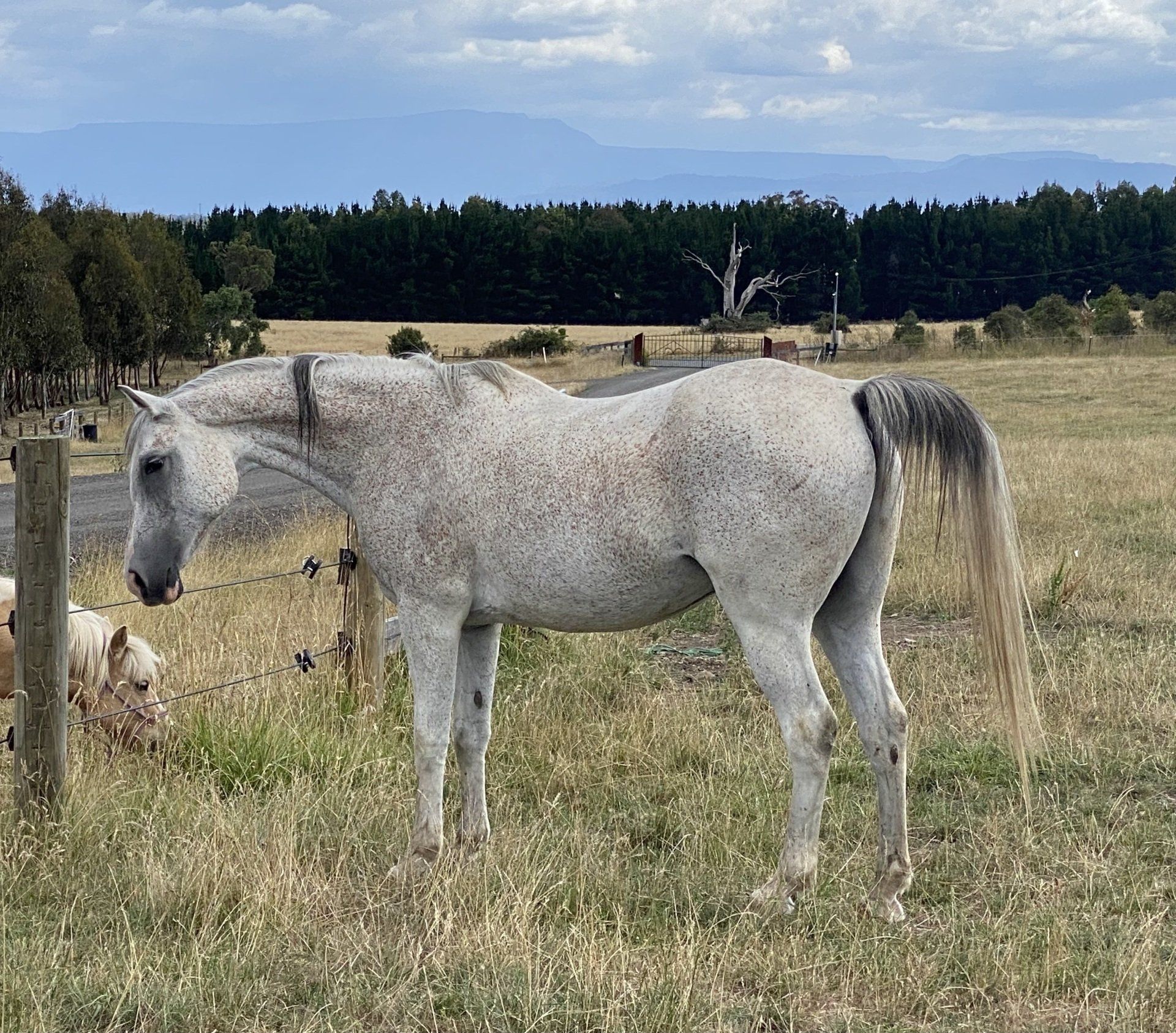 Beautiful Ruby has been part of Marcus and Eleanor’s family for nearly twenty years. Her gleaming coat and long legs make her look like a spring chicken, but she is actually a worldly wise working stock horse, hunt horse and family pony. Bred in Tasmania, Anglo Arabian Ruby is a granddaughter of 1970 Caulfield Cup winner Beer Street. She has an awesome walk and big, smooth extended trot.